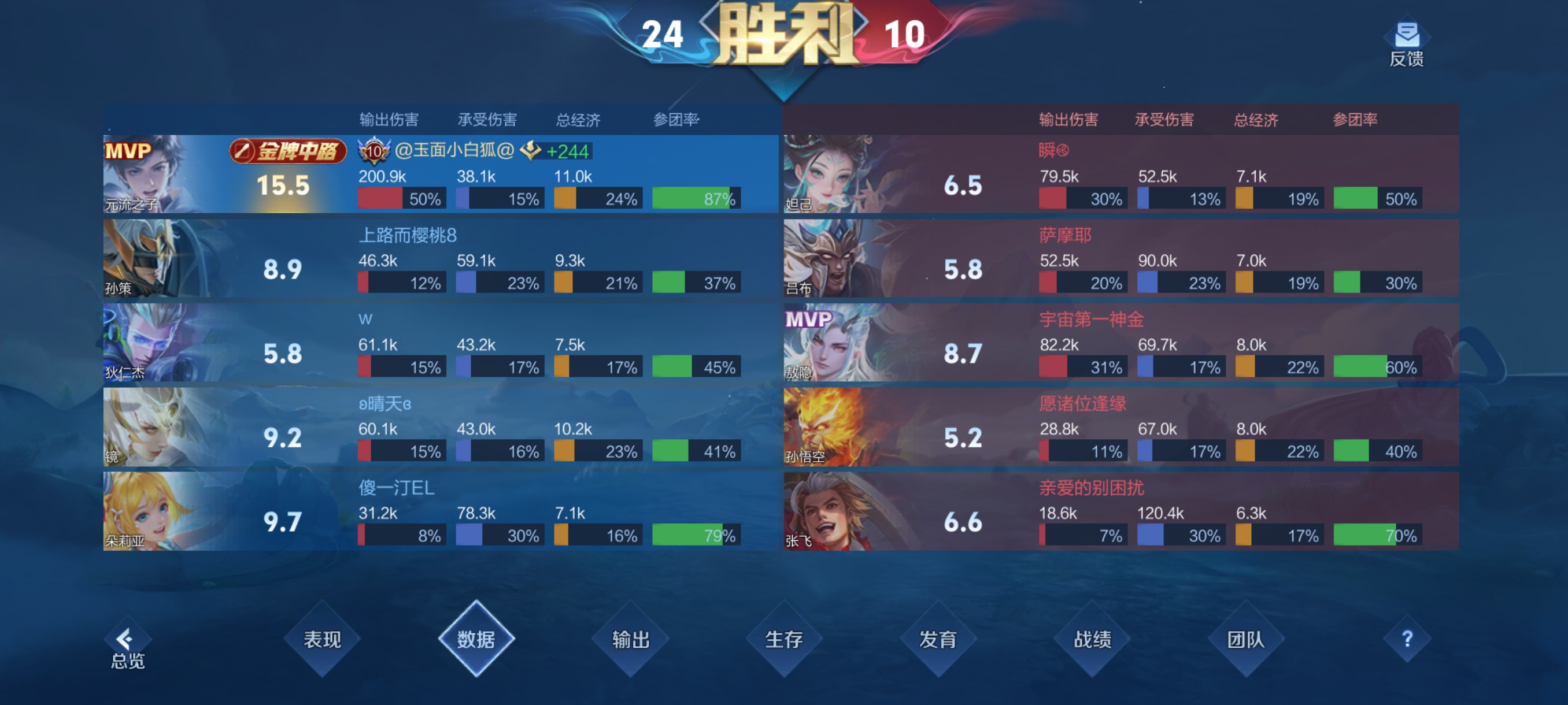 中期打法:如果说前期没有秒人能力,那么正常发育到中期,一般就会具备这种爆发伤害。游走的时候3122基本可以带走对面脆皮,对于中单没必要那么在意自己的兵线,可以适当的让给打野吃,自己游走拿人头一样的爽。游走的时候要注意对面打野,法师元流之子的自保能力不强,避开单独碰面。