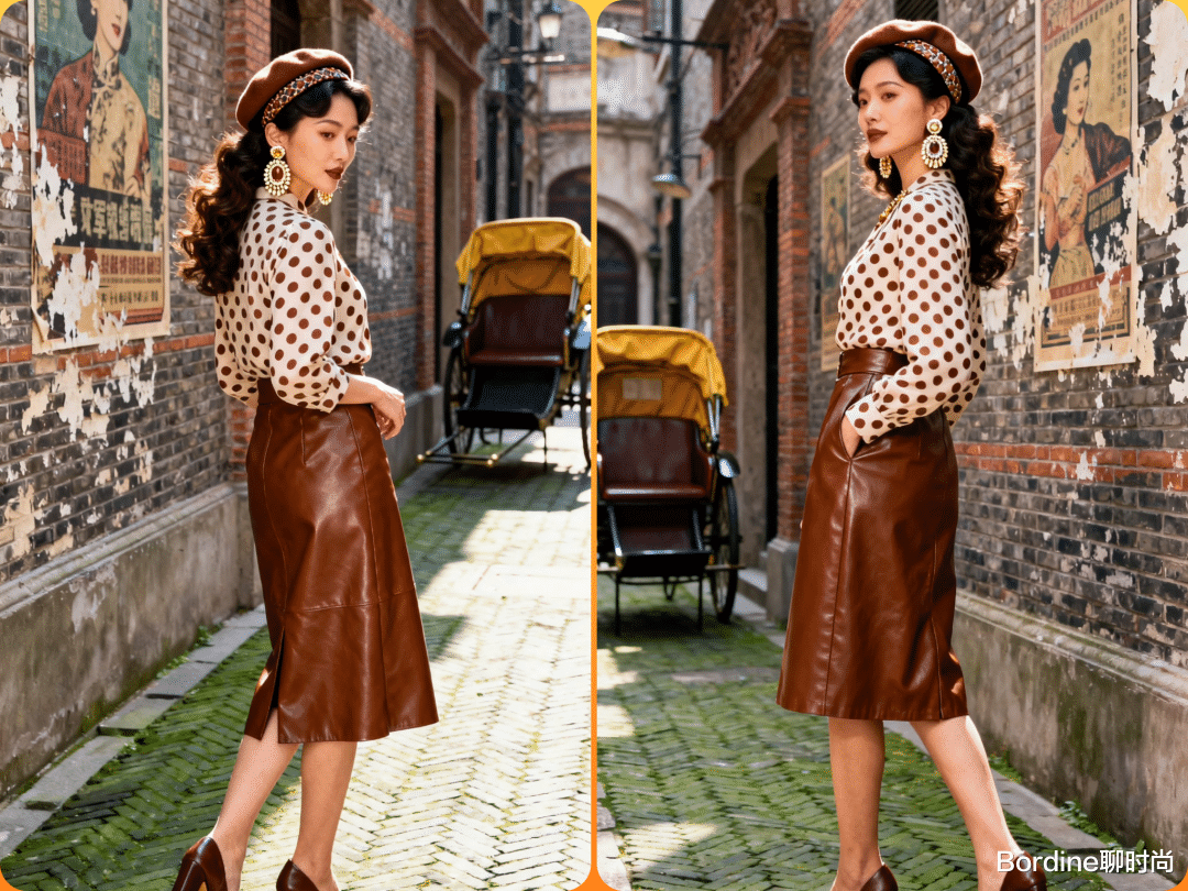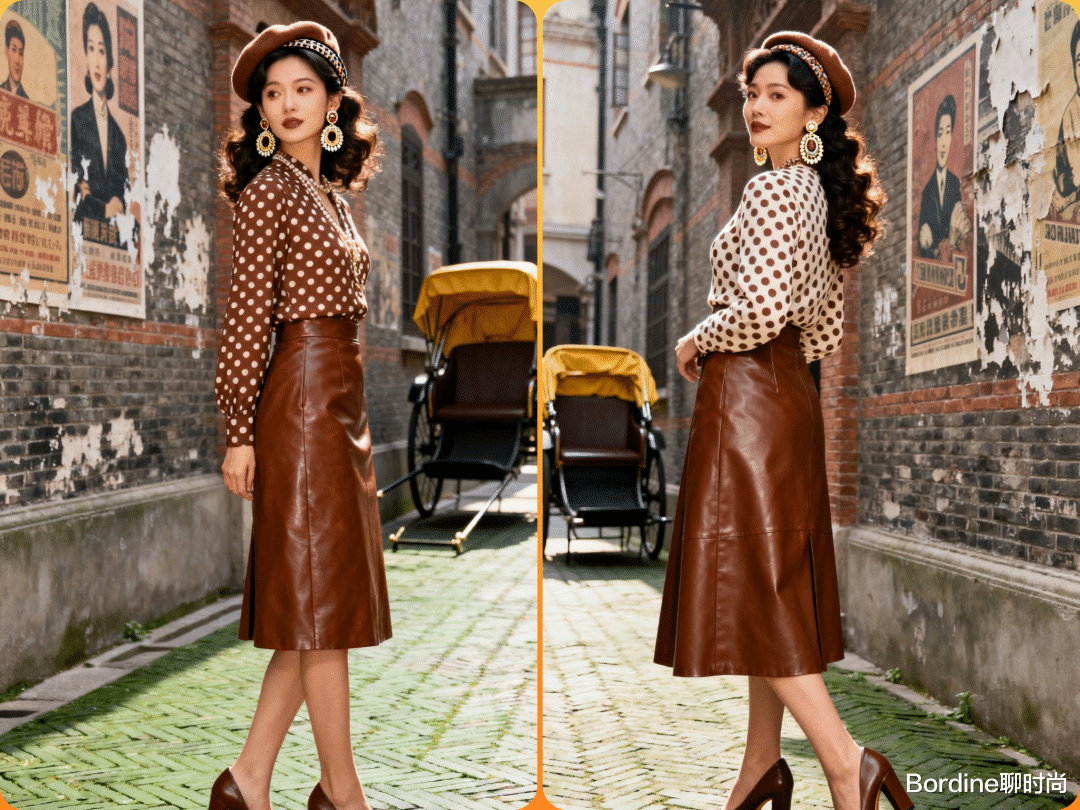 波点图案以衬衫等服装出现,利落大方的复古在遇到皮裙的时候,擦出了不一样的火花。