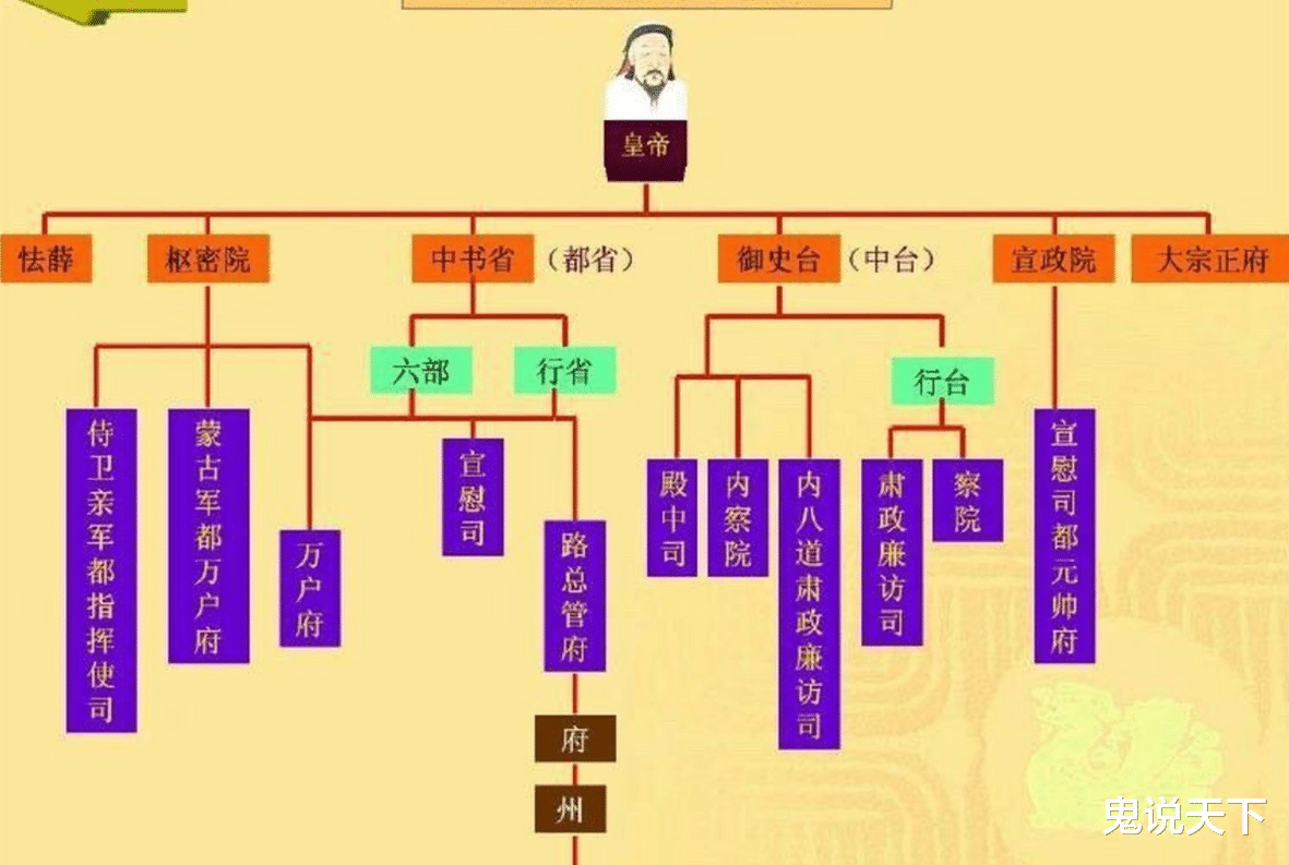 蒙古帝国的中央官制汉化基本是以“燕京行省”为蓝本的,木华黎的误认也就没有被纠正。窝阔台继位后设立“必阇赤”处理朝政,而“必阇赤”的长官就叫中书令。忽必烈建立元朝将“必阇赤”正式改组为中书省,是元朝的核心机构。然而元朝的中书省其实是以前的政事堂,而不是唐朝的中书省。
