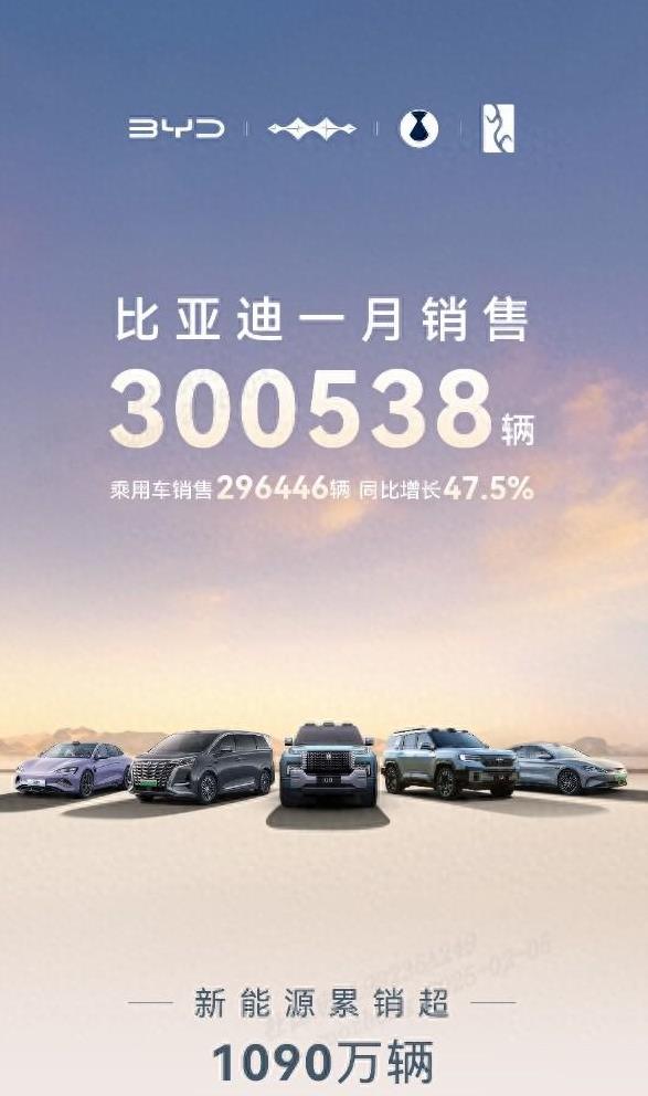 在2024年12月,比亚迪汽车销售514,809台,连续第三次销量突破50万大关 ,全年销量超427万辆,这些销量数据可以说是其强大实力的有力证明。进入2025年,比亚迪的强劲势头丝毫未减。1月,比亚迪销售新车300,538辆,乘用车销售296,446辆,同比增长47.5%,再次凭借产品和技术赢得市场。在这成绩背后,是比亚迪旗下各个系列车型的全面发力。