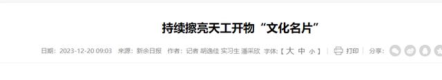 信息来源:《持续擦亮天工开物“文化名片”》,2023年12月20日,新余市人民政府。