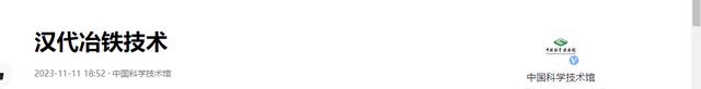 信息来源:《汉代冶铁技术》,中国科学技术馆,2023年11月11日。