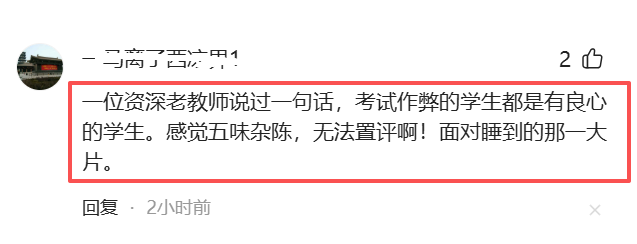 有位老教师留言:“其实,考试作弊的学生往往是有良心的,因为他们还想赢,还在乎那个分数。”