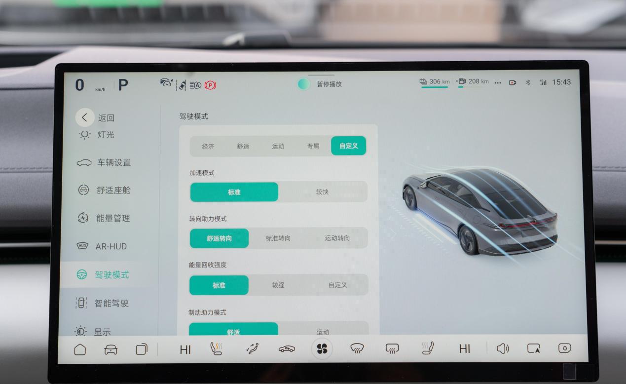 进入车内,你会被深蓝L07的科技感所包围。15.6英寸的悬浮式中控大屏集成了导航、娱乐、空调控制等功能,操作流畅,反应迅速。AR-HUD抬头显示系统可以将导航信息、车速等重要信息投射到前风挡玻璃上,方便驾驶员查看,提高驾驶安全性。此外,深蓝L07还配备了零重力座椅、智能香氛系统、22扬声器音响等舒适性配置,为用户带来更高级的驾乘体验。