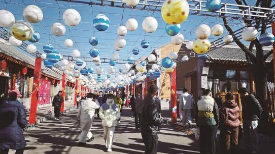 在离石区,“寻找熟悉的年味”系列活动精彩纷呈,永红村、彩家庄、王营庄等六大景点联动发力,形成“灯海盛宴、晋韵古村、冰雪童话”三大核心业态。永红村1万平方米的神话灯海璀璨夺目,国家级非遗打铁花、飞天威亚秀轮番上演,100余家特色小吃摊烟火气十足;彩家庄以“一村一世界,一日三百年”为主题,全员NPC互动、晋商文化展演,让游客“穿越”回晋商鼎盛时期;王营庄的冰雪乐园里,冰雕作品栩栩如生,家长与孩子在冰雪世界中尽享亲子欢乐。