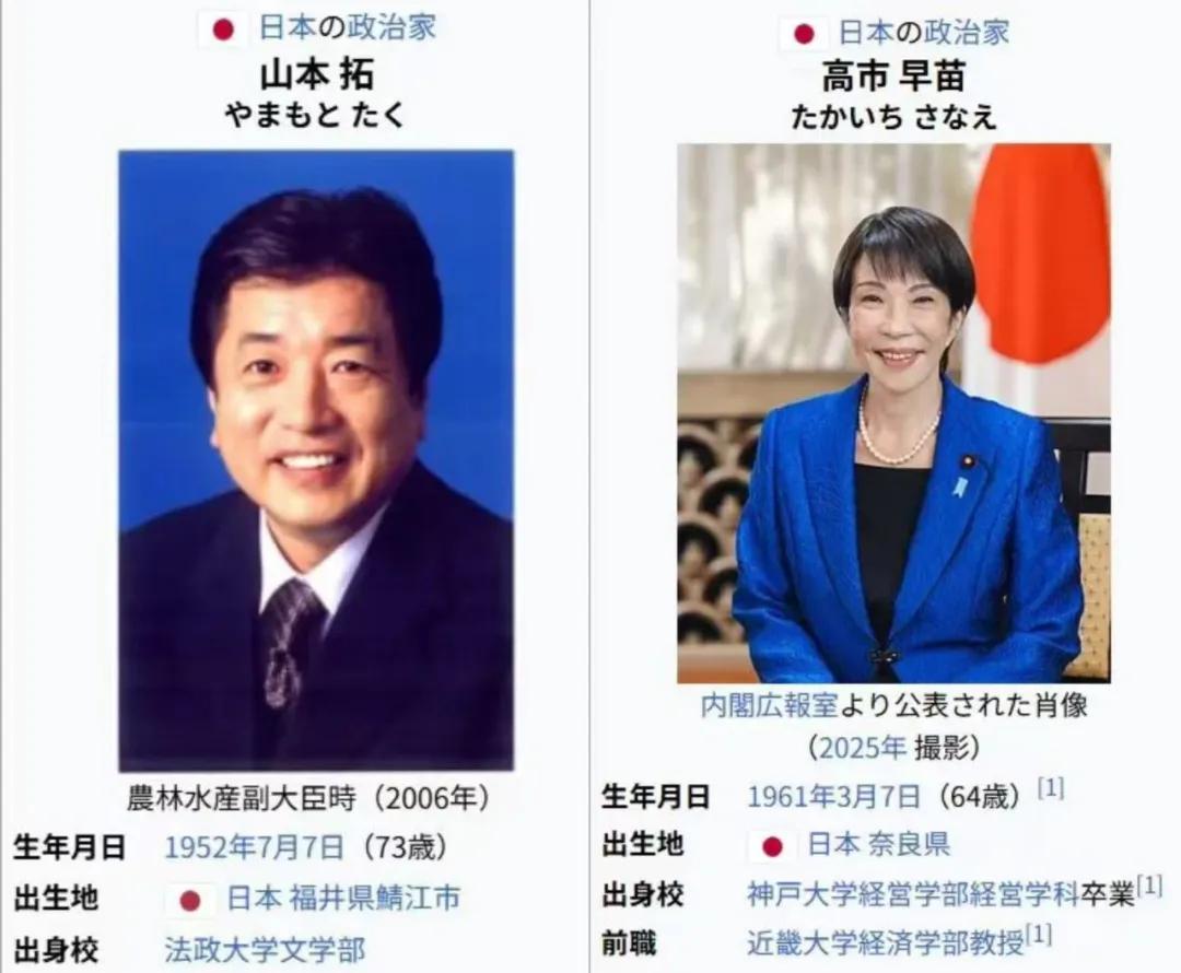 山本拓、高市早苗的公开资料。Photo from 和气猫女士