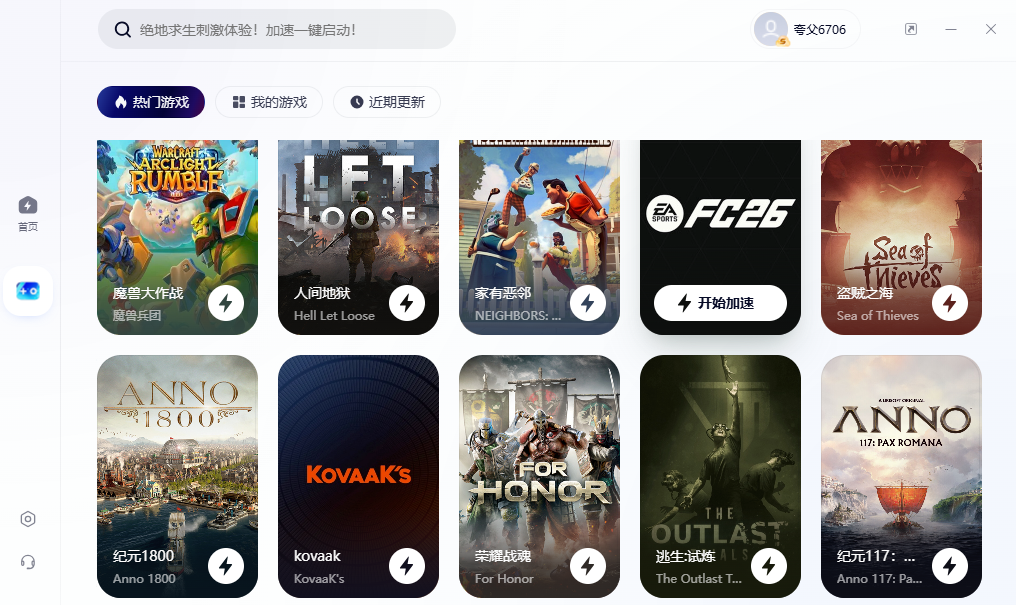 夸克浏览器PC端已上线游戏加速功能,当前所有游戏均处于限免活动中,登录即可免费享受电竞级加速体验!加速器固定入口位于夸克PC浏览器左侧导航位置,网页浏览和游戏加速两不误,一站式游戏体验,从夸克开始!