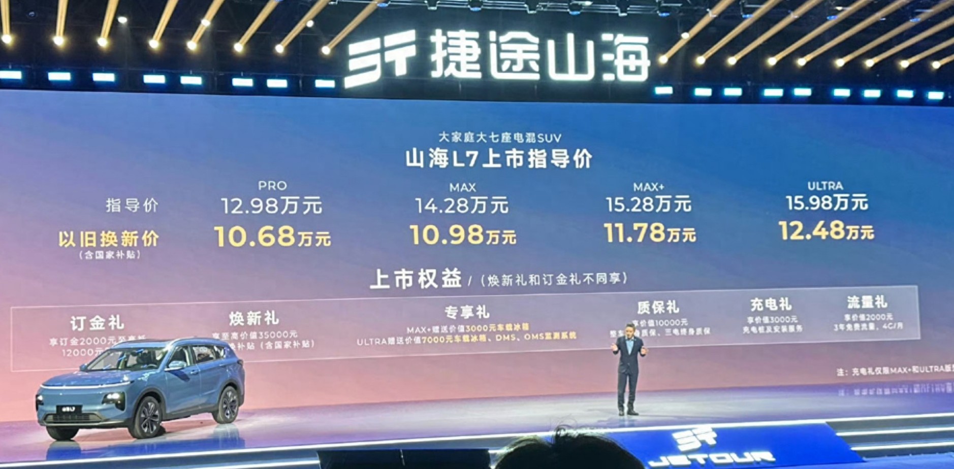 理想汽车率先掀起了冰箱彩电大沙发的革命,没想到传统汽车厂商如今也忍不住跟进了,并且直接把价格从30万元级别打到了13万元级别,这就是奇瑞捷途山海L7,官方指导价12.98-15.98万,并且采用的是插电混动动力,那么这款中型插电混动SUV值得买吗?