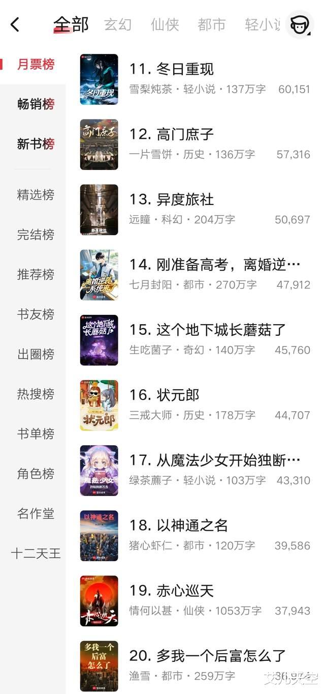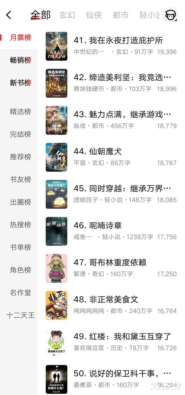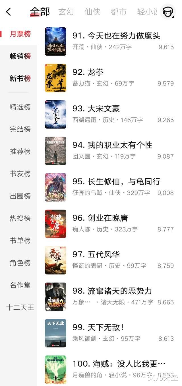 以上就是这周月票榜前百名的一个简单的排名情况,记录一下,没有什么特别让人期待的,那么本期就到这里,下期汇总一下完结作品。