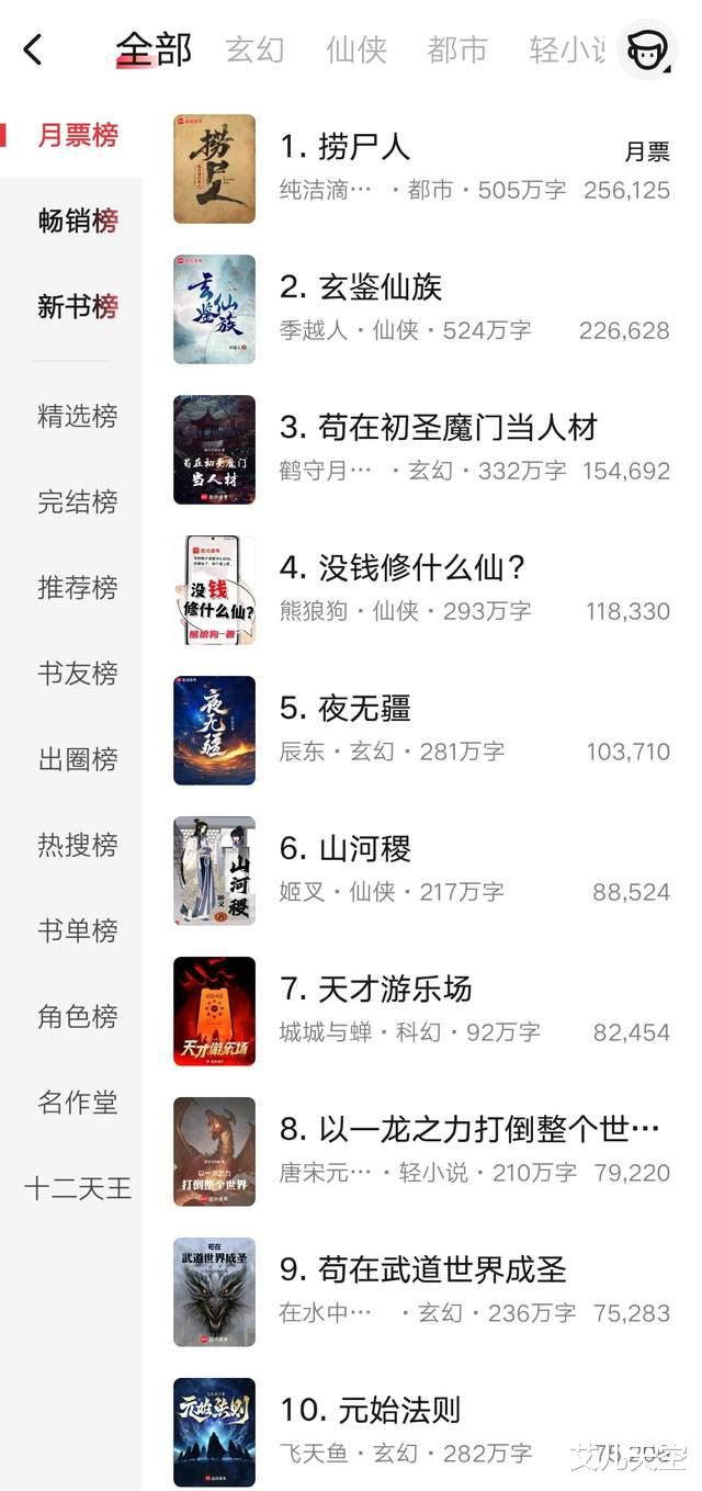 前八名没有什么变化,鹤守月满池的《苟在初圣魔门当人材》发了完结预告,预计会在下个月七号结束正文。