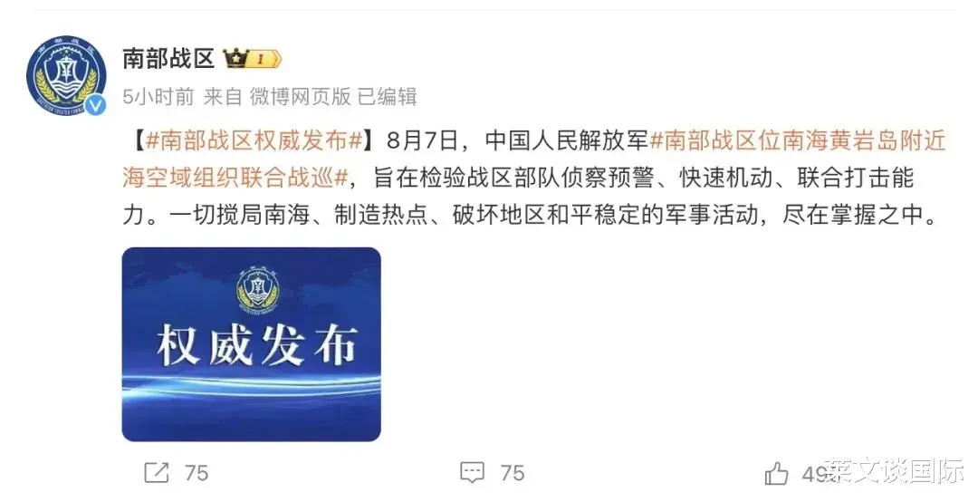 南海,自古以来就是中国的海域,近日这片海域再次成为国际关注的焦点。美国、菲律宾、加拿大和澳大利亚四国于8月7日在南海举行了一场规模不小的联合军事演习。然而,与以往不同的是,此次演习不仅引起了地区国家的关注,更吸引了中国海军的"围观"。美菲加澳四国的联合军演,共出动了4艘护卫舰,在南海的广阔海域上展开了一系列的海上行动。这次演习被视为四国军事合作的一次重要展示,同时也是对区域安全承诺的重申。演习内容包括海上安全行动、反潜作战和舰队防御等,旨在加强各国海军之间的协同作战能力。然而,演习期间,中国海军的三艘护卫舰对四国舰只进行了近距离的"围观"。菲律宾军方声称,中国海军的这一行动是对联合军演的"尾随"。此举引发了外界对中国海军战略意图的广泛猜测。中国国防部对此回应称,中国人民解放军南部战区在南海黄岩岛附近海空域组织的联合战巡,旨在检验部队的侦察预警、快速机动和联合打击能力。这表明中国军队对南海地区的安全态势保持高度警惕,并有能力应对任何可能的威胁。