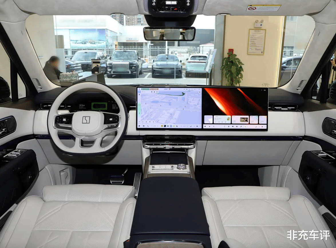 看看这布局,16英寸的中控屏,16英寸的副驾屏,再加上后排的大彩电。