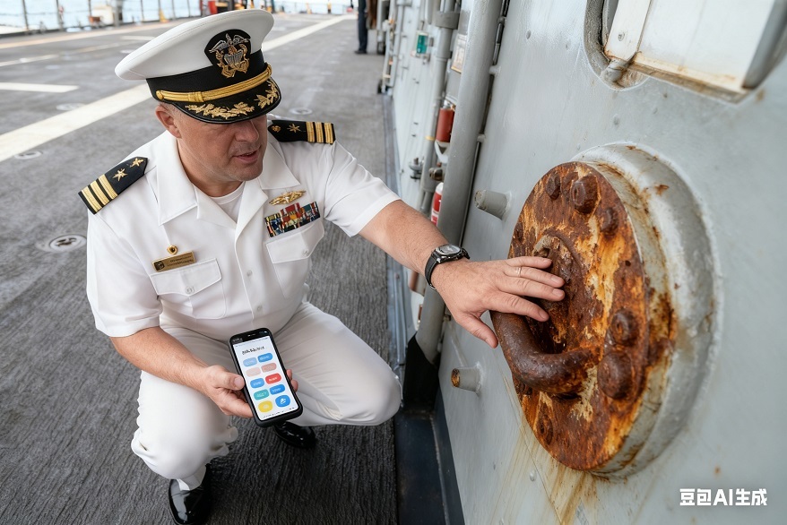“杜威”号驱逐舰驶入新加坡港口时,浑身锈迹如同钢铁之躯的皮肤病,它的“不堪形象”被拍成照片,在国会听证会上传阅。锈蚀不仅侵蚀钢铁,更在消耗美国海军的荣耀。深夜短信与手机应用能暂时缓解症状,却难根治这场深植于美国工业体系的“慢性病”。