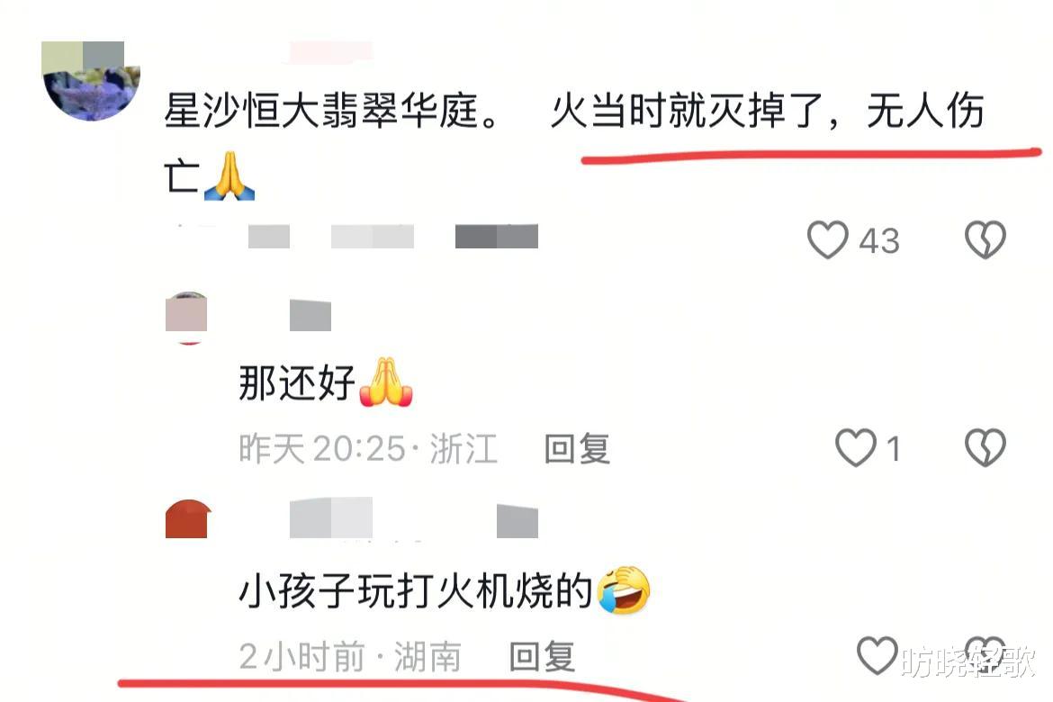 小区的业主爆料,火当时就被灭掉了,没有人伤亡,是小孩子玩打火机烧的。