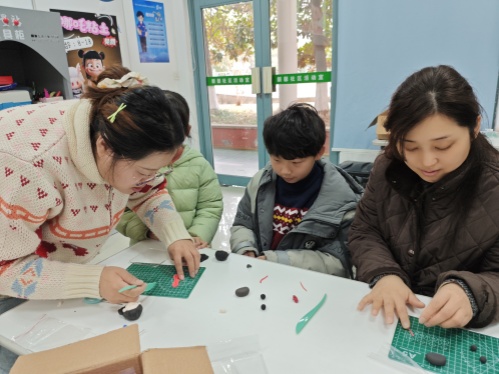 “我命由我不由天,是魔是仙,我自己说了算!” “从来生死都看淡,专和老天对着干。”国漫电影《哪吒2》掀起观影狂潮,剧中经典台词至今一直在我们耳边回响。活动在未成年人的热烈讨论中开始。制作环节开始,老是手持黏土,细致入微地讲解道:“先将肉色黏土轻轻搓成饱满圆润的小球,雕琢出哪吒那憨态可掬的圆脑袋,接着,把红色黏土仔细擀成均匀薄片,勾勒出威风八面的混天绫……”老师耐心地指导孩子们按照步骤捏制哪吒,在过程中鼓励孩子们用不同颜色的黏土进行调色,并帮助他们调整细节。陪同的家长也积极参与,为孩子加油鼓劲。