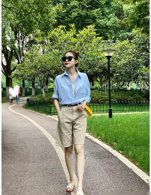 第一种是百慕大短裤,夏天穿普通的短裤太容易暴露腿型缺陷,而选择百慕大短裤更具有时尚感,而且能够遮挡住我们粗壮的大腿, 这时候你可以去选择高腰的设计搭配流畅的裤型,显瘦又不繁琐复杂,收放自如。
