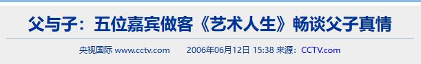 来源:央视国际 www.cctv.com(2006-06-12)——《父与子:五位嘉宾做客《艺术人生》畅谈父子真情》的报道