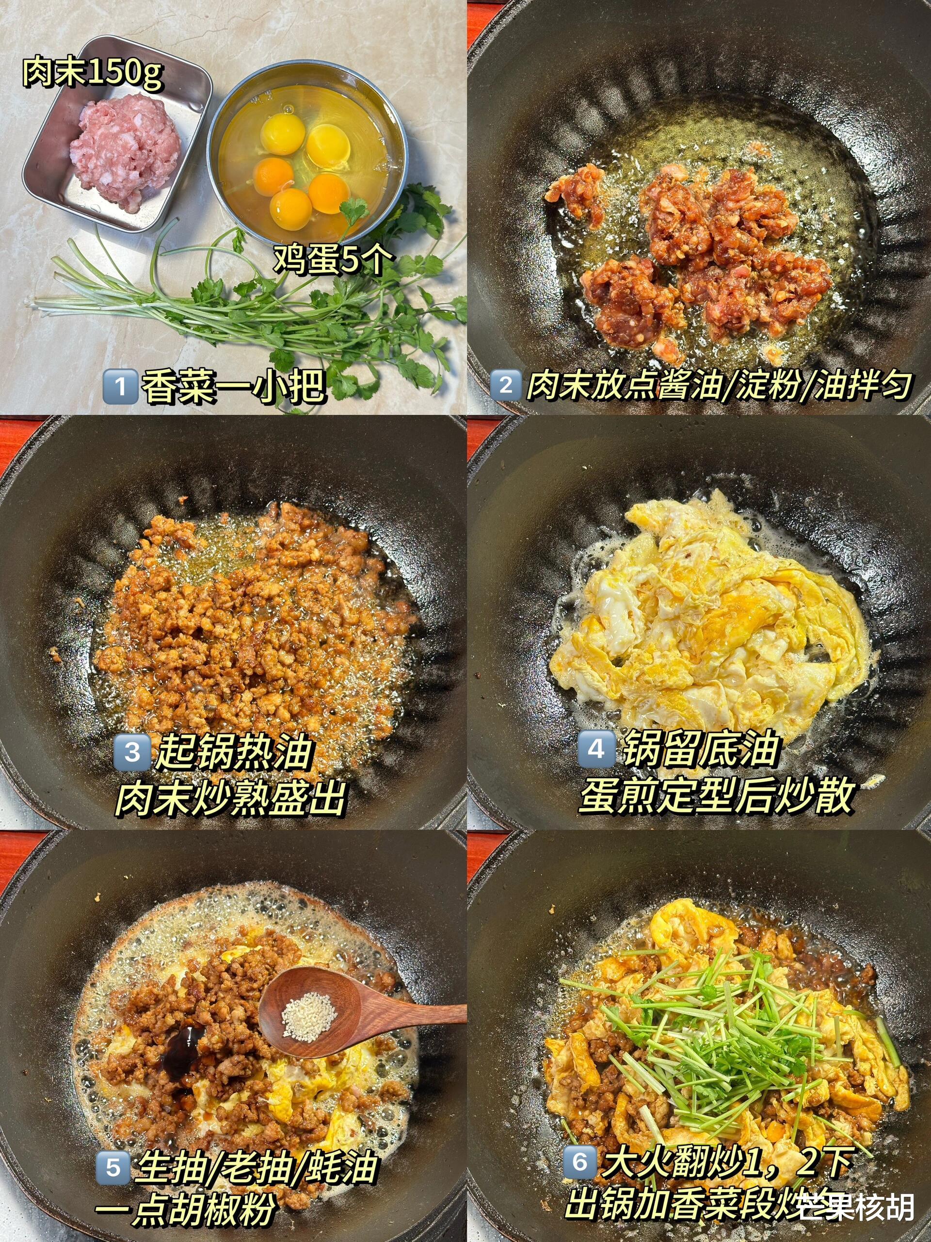最后,把一小把香菜段扔进去,开大火快速翻炒个一两下,让香菜的香气和锅里的食材融合,赶紧出锅!香菜的清新一下子就把肉香和蛋香衬得更浓了,这时候装盘,你就瞅吧,色泽诱人,闻着喷香,吃一口,我的妈呀,香嫩爽滑,肉末的扎实、鸡蛋的嫩滑、香菜的提味,全在嘴里打转,能把人香得直迷糊!
