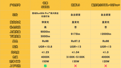 二、护眼大路灯核心参数对比