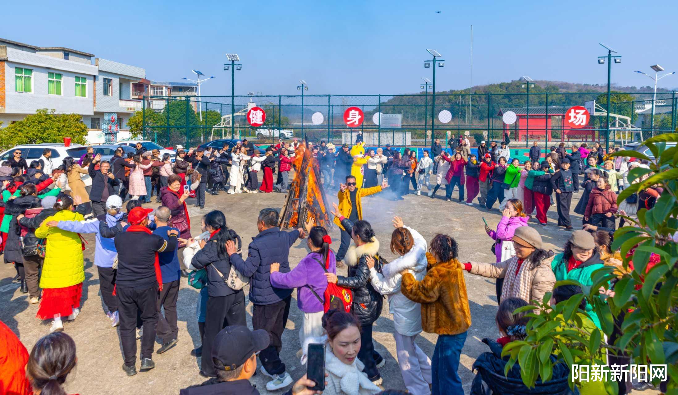 午后,游客们参与蒸糯米、打糍粑、印米粑等动手活动,祠堂门口四张大桌前人头攒动,软糯糍粑裹芝麻糖、印模米粑带吉祥纹样,满是团圆记忆。篝火点燃后,大家围火歌舞、闲话家常,驱散寒意、拉近距离。
