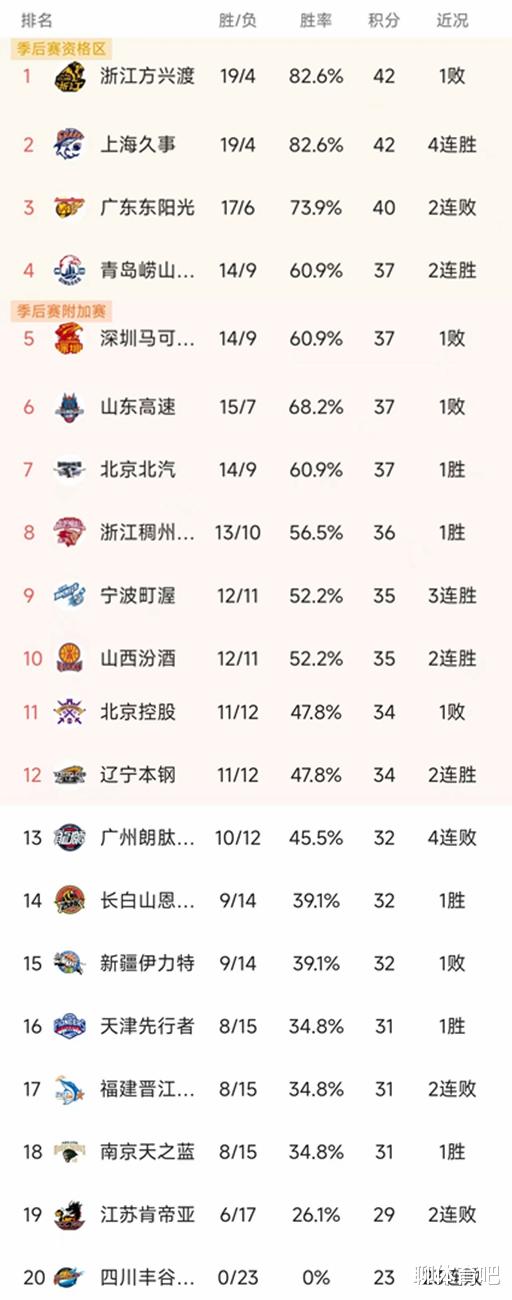 CBA最新积分榜