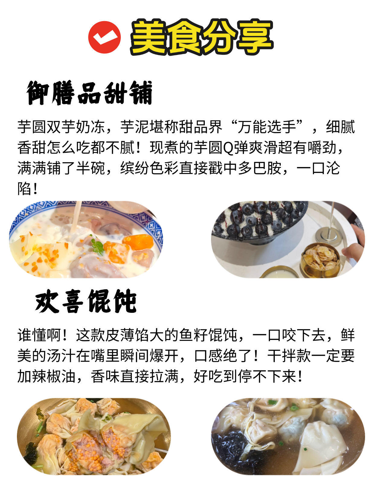 芋圆双芋奶冻,芋泥堪称甜品界“万能选手”,细腻香甜怎么吃都不腻!现煮的芋圆Q弹爽滑超有嚼劲,满满铺了半碗,缤纷色彩直接戳中多巴胺,一口沦陷!🌯 欢喜馄饨