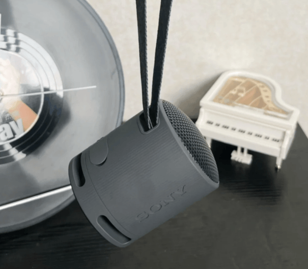 优势分析:这款蓝牙音箱外观简洁又有时尚感,双悬挂挂绳的设计挺实用,角度可调,方便外出或室内随手悬挂。底部的硅胶垫让它平放在桌面上也能保持稳定,不容易滑动。