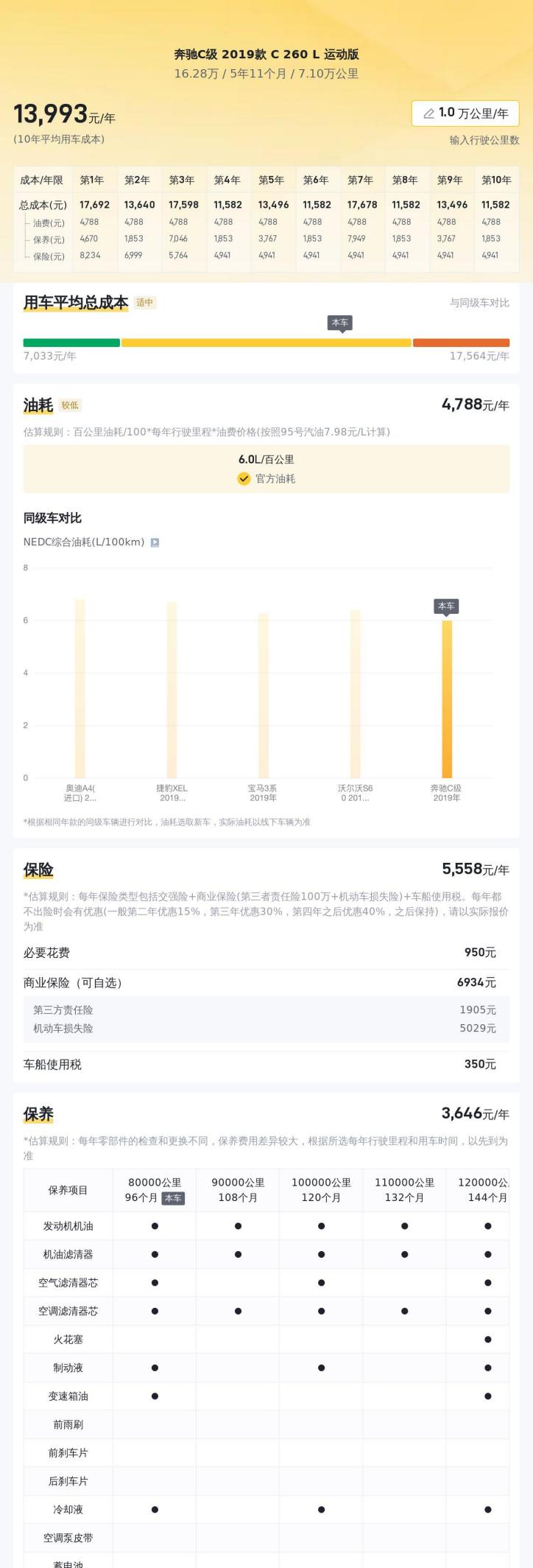 这辆2019款奔驰C260L运动版,搭载1.5T发动机+48V轻混系统,最大马力184匹,匹配9AT变速箱。这样的动力组合在保证性能的同时,也兼顾了燃油经济性。根据估算,它的年均用车成本约为14179元,当然,这只是一个参考值,实际用车成本会根据个人驾驶习惯和用车频率而有所不同。相比同级别的其他豪华品牌车型,这个用车成本还是比较合理的。