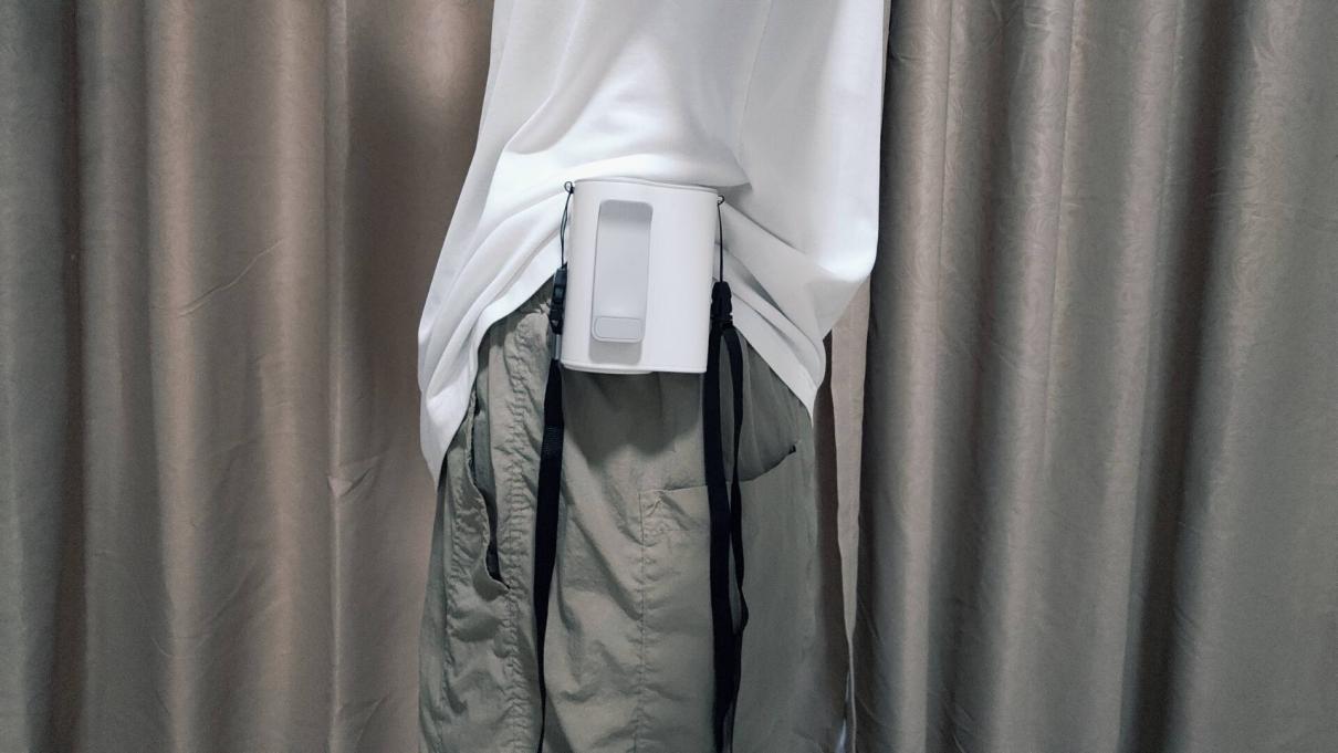 西圣WindHip搭载了13000转高速无刷电机,风力高达15m/s,此外风扇还使用了涡轮增压技术,挂在腰上可以很明显的感觉到风呼呼从下往上吹。