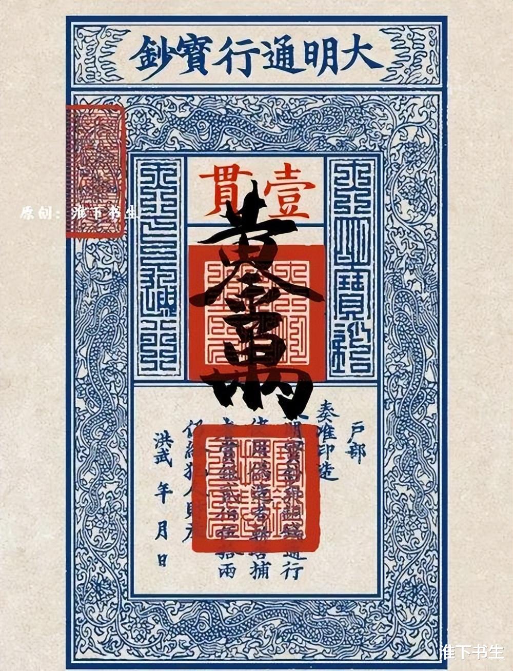 明初,朱元璋禁止民间用金银进行交易,他发行了世界上尺寸最大的纸币,大明通行宝钞,这种宝钞的尺寸达到了36*22厘米,比今天打印用的A4纸还略大。