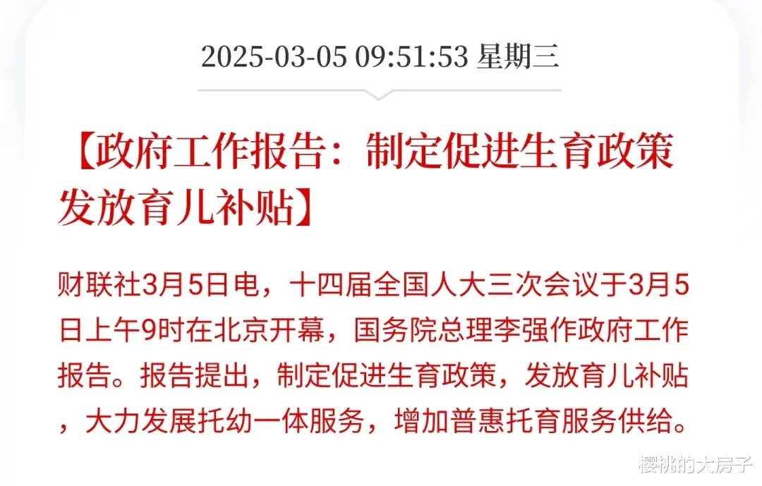 原因是,月初的zf工作报告,zf重点提到了,制定促进生育政策,发放育儿补贴。
