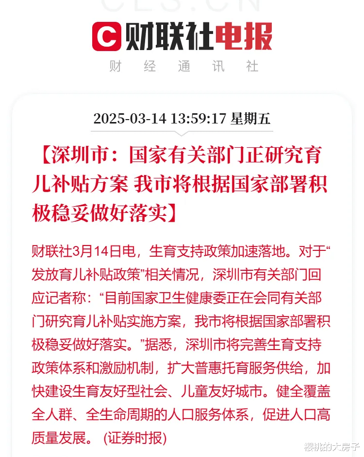 不仅呼和浩特,最近深圳也表态了,原话是,目前国家卫生健康委正在会同有关部门研究育儿补贴实施方案,我市将根据国家部署积极稳妥做好落实。
