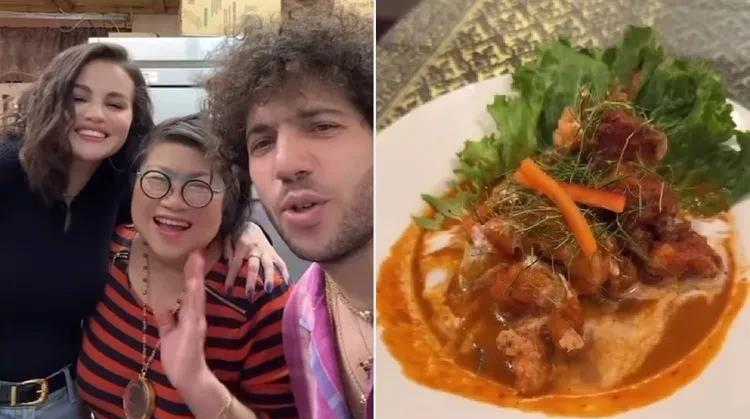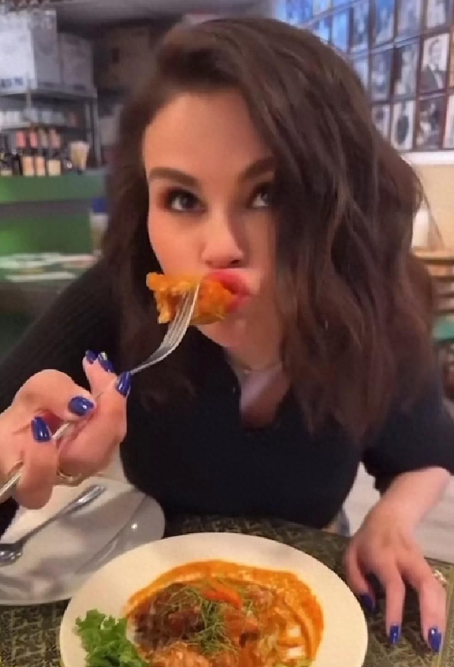 厨房监控捕捉到两人制作天妇罗虾的逗趣画面,赛琳娜咬着金黄酥脆的虾尾对镜头粲然一笑的画面,本该成为粉丝嗑糖的经典素材。