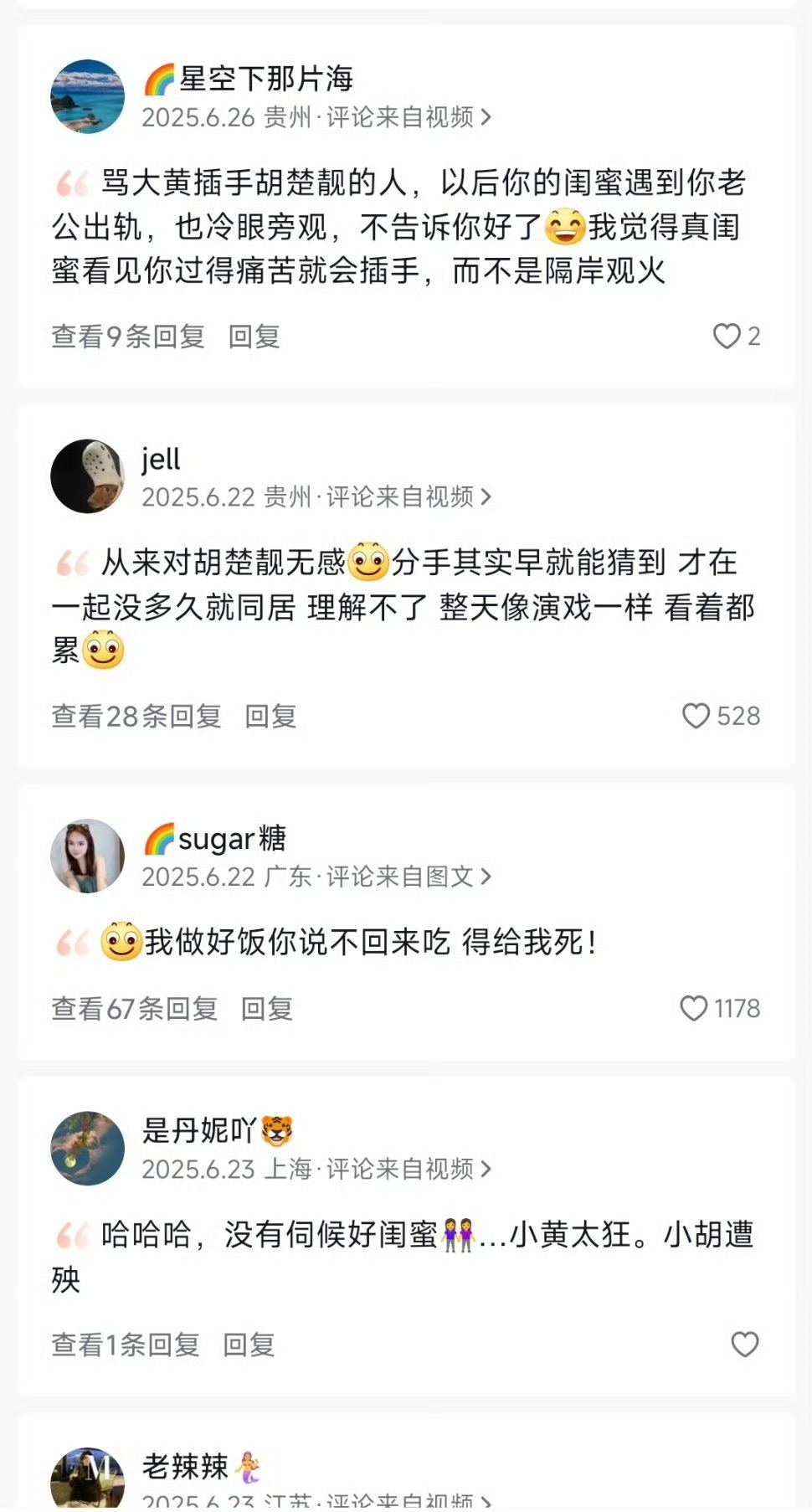 胡楚靓的两次情感事件引发全网热议,评论区呈现两极分化: