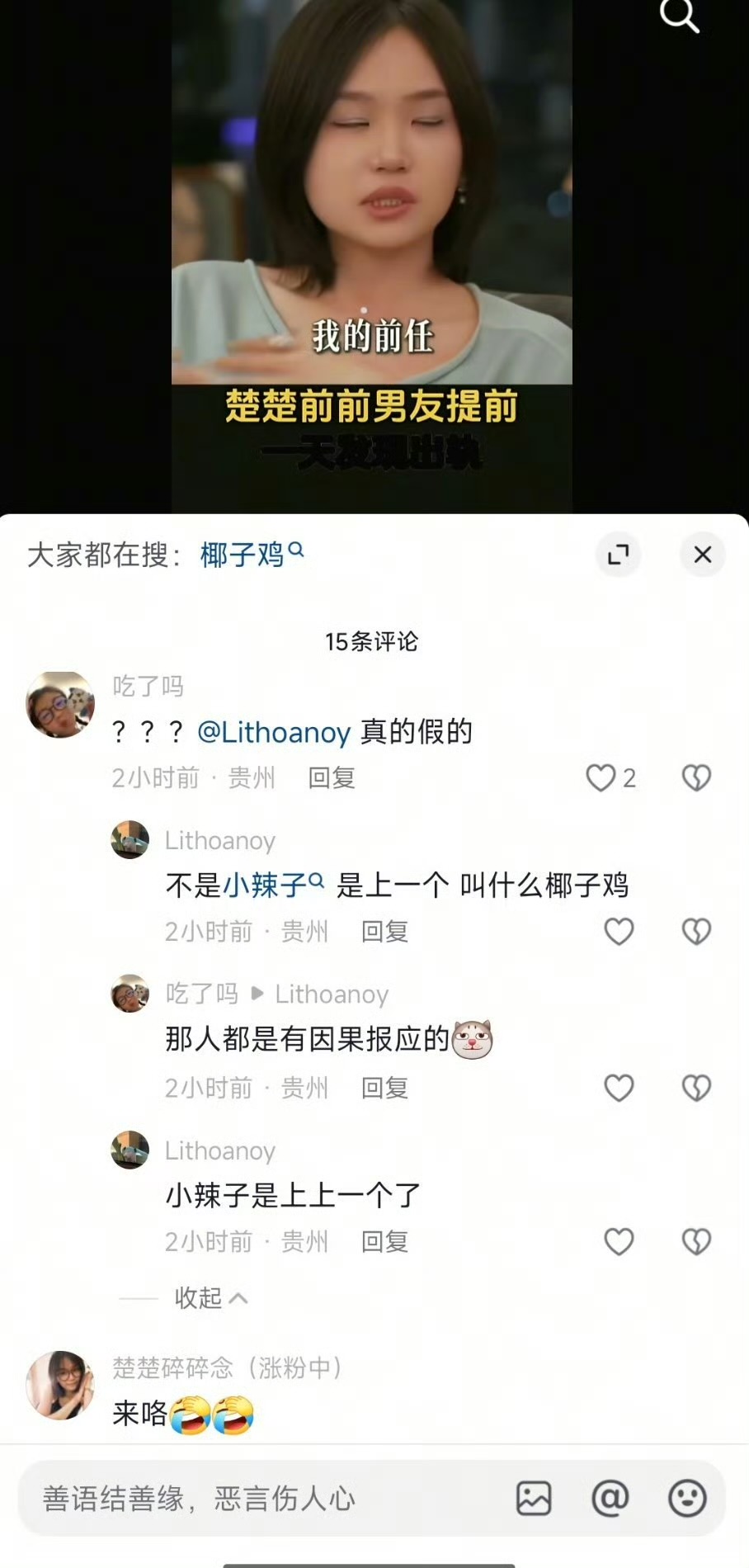 网友“爱看热闹的喵喵”调侃:“胡楚靓的感情史简直是真人版《我的前半生》,只是剧本太跌宕!”