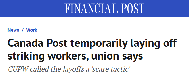 与此同时,工会方面还透露,加拿大邮政已经开始对罢工员工进行临时裁员。加拿大邮政工人工会(CUPW)在周一发布的一则正式通知中严厉谴责了这一行为,称其为“恐吓策略”,并表示将对此进行深入调查。