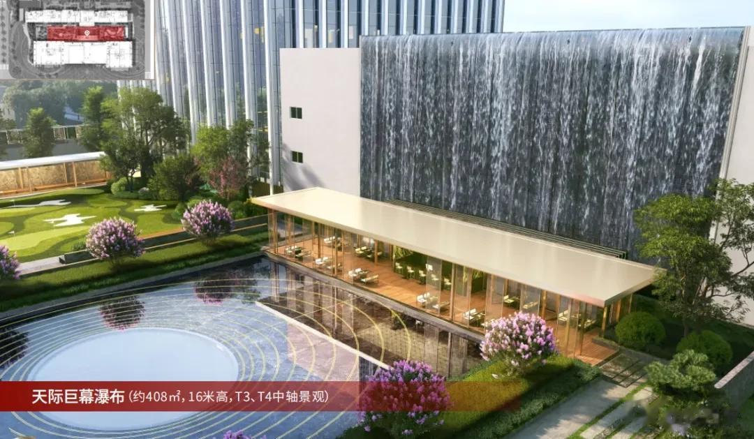 ·约5000㎡屋顶花园,搭配16米挑高天际巨幕瀑布(408㎡)、超800㎡屋顶高尔夫、半开放式户外吧,组成二重会客雅境;