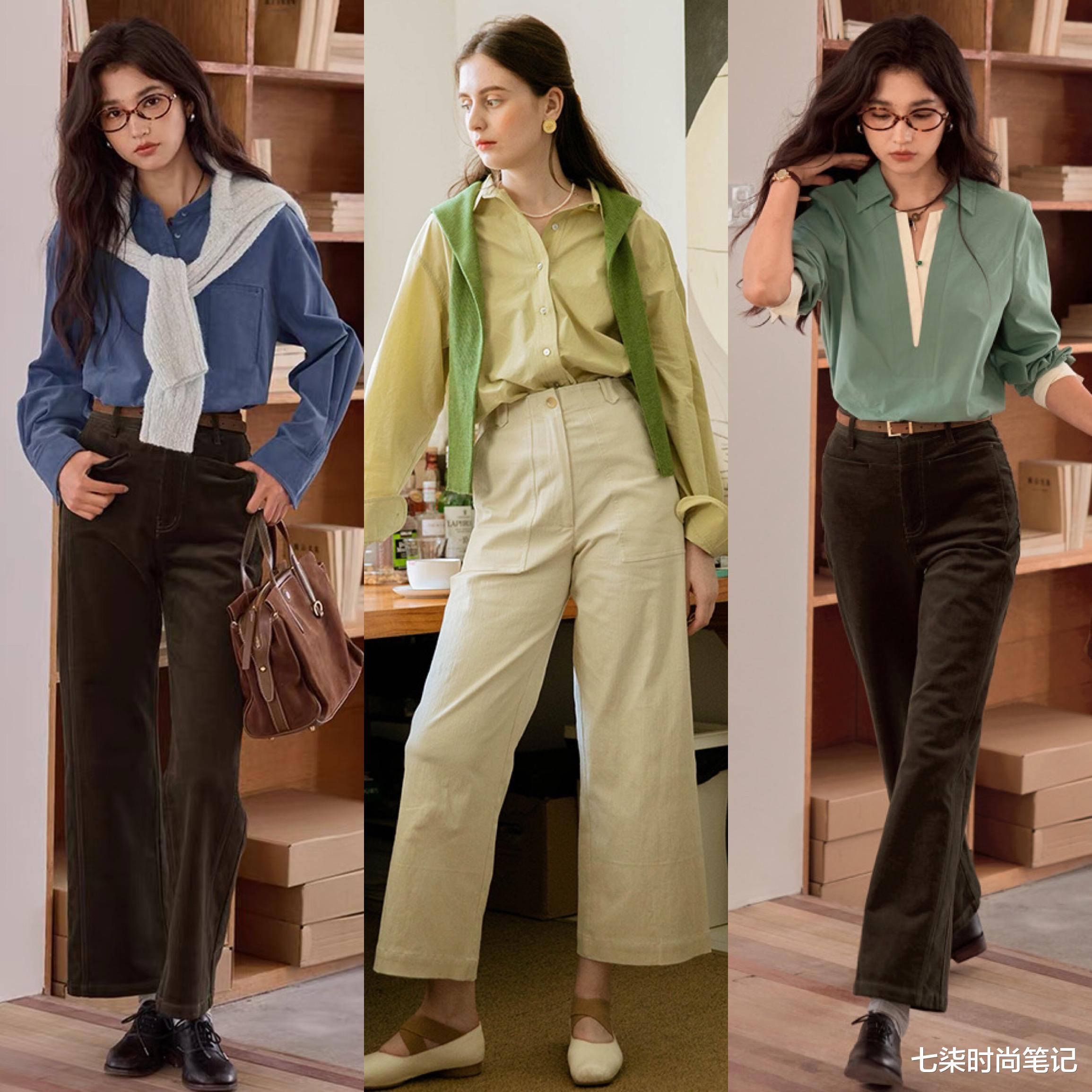 纯棉材质的九分裤,休闲中多了几分文艺气质,宽松的版型不挑身材,米白色清爽又显质感,搭配一件明亮的彩色衬衫,中和了彩色的跳跃感,给人感觉青春洋溢,活力满满。略显沉闷的深色系九分裤,搭配低调的蓝色衬衫,再加入白色披肩过渡提亮,沉稳又不失活力。