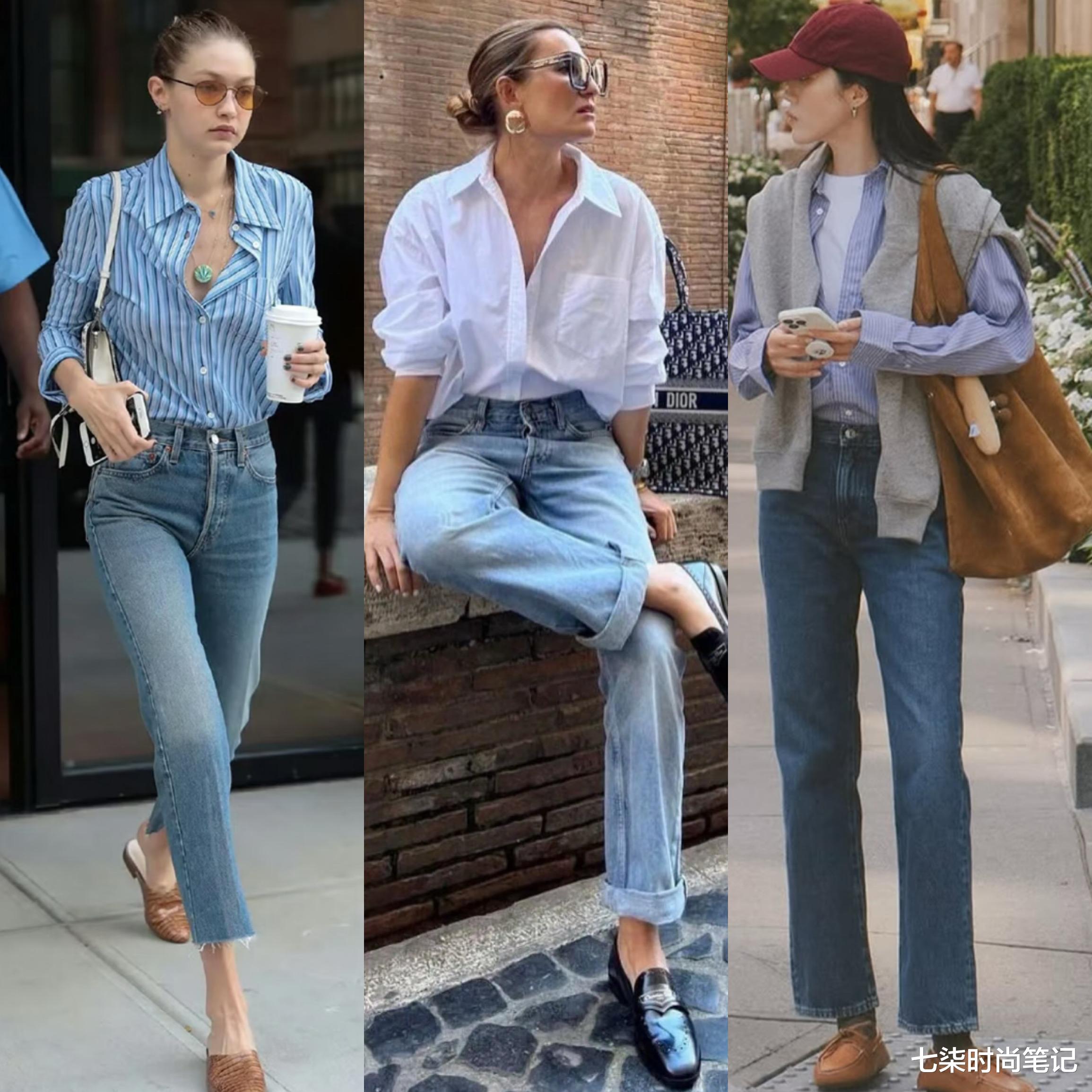 最经典的当属九分牛仔裤了,它虽不出挑却总能在我们不知道穿什么的时候及时救场。早秋时节天气宜人,但早晚却带着丝丝凉意,选择一件干净的白衬衫搭配九分牛仔裤,清新淡雅的文艺气质扑面而来。通勤上班可以将衬衫的衣角塞进裤腰里,不仅能够凸显出腰线,让身材比例更加完美,又能增添一份干练与自信。