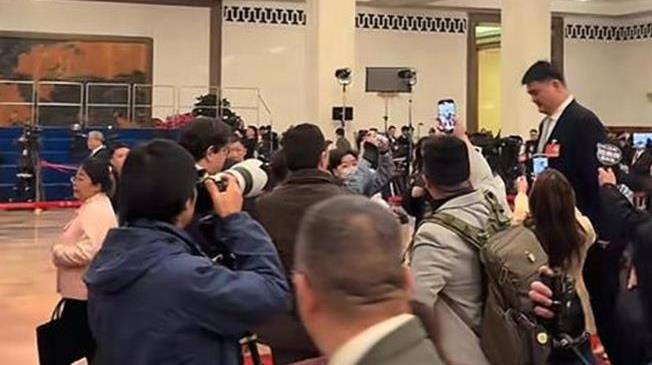 跟那些靠颜值引人注目的明星不一样,全国人大代表姚明凭借他那逼人的身高,在人群中就是个耀眼的存在。