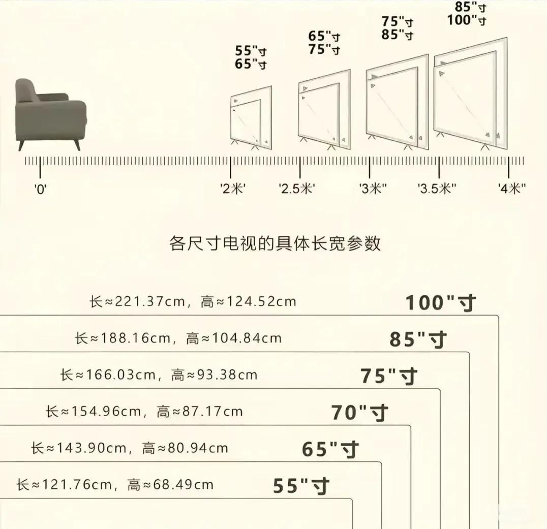 现在的居住条件改善了,客厅面宽一般在3米以上,这个距离看65寸甚至75寸的电视完全没问题。
