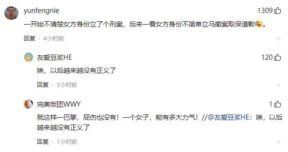 也有网友表示:一个女生能有多大力气,别小看女生,有的女生力气不比男生小