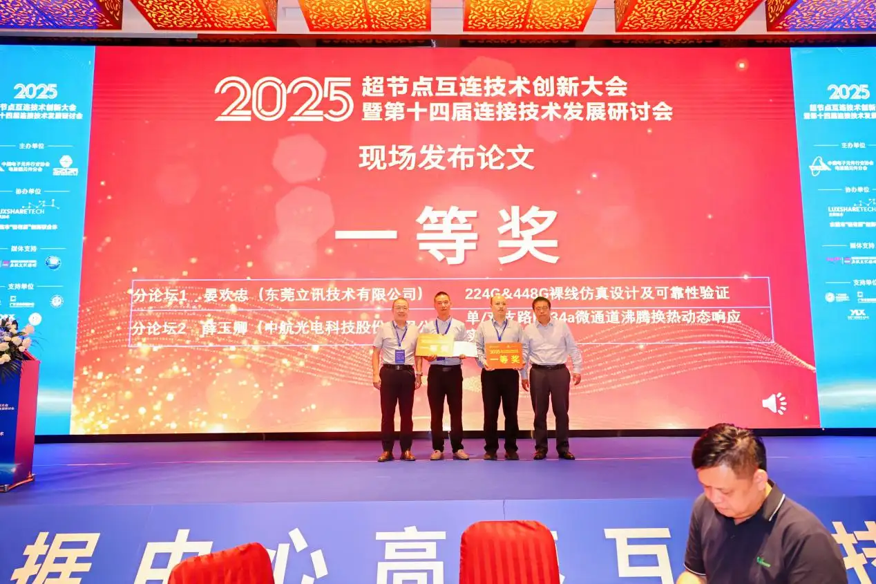 大会期间还举办了优秀论文颁奖仪式,维峰电子董事长李文化和华达科技董事长范军卫代表会议主办机构,为论文一等奖获得者晏欢忠和薛玉卿颁发奖项。立讯技术、中航光电等企业的多项技术成果获得表彰,充分体现了我国连接器产业在基础研究与工程应用方面的深度融合。本次大会不仅是技术成果的集中展示,更是推动产业生态协同的重要平台。与会专家一致认为,超节点互连技术已成为支撑国家算力基础设施建设、培育新质生产力的关键环节。唯有通过标准引领、技术协同与生态共建,方能在全球科技竞争中掌握主动权,为数字中国与网络强国建设奠定坚实的底层技术根基。