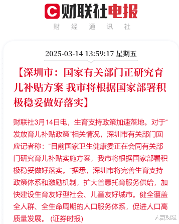 与此同时,深圳也透露即将跟进生育补贴政策。在人口负增长的大背景下,各地纷纷出招鼓励生育。