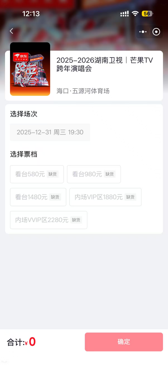 12月12日12时12分,2025-2026湖南卫视芒果TV跨年演唱会门票在京东全网首发开售,所有档位门票上线不到1分钟便全部售罄,再次印证这场跨年盛宴的超高人气。
