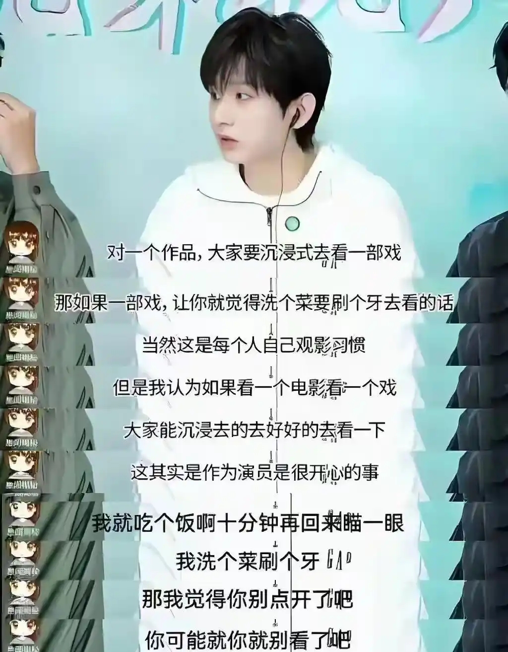 在这次采访里,面对作品不如预期的质疑,他没有反思自己的表现,反而把矛头对准了衣食父母——观众。他那一套理论,说什么现在的观众看剧不专心,一边吃饭洗菜刷牙一边看,这样不如别看,别浪费会员钱。这话一出,那是真的“扎心”了。