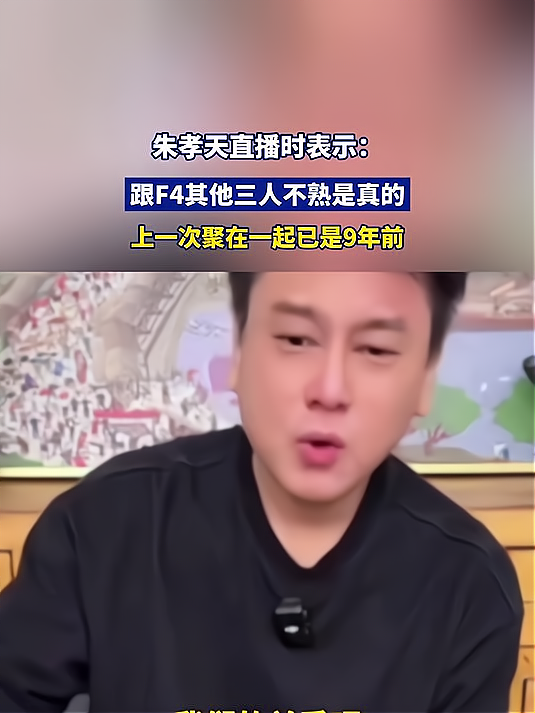 回顾朱孝天的过往,可以发现他的一系列矛盾行为。一方面,他公开表示与F4其他成员“其实不熟”,甚至在今年7月16日的直播中说,自己与F4其他三名成员不熟,虽然凑在一起工作会聊聊天,但日常生活没有交集,连联系方式都没有。