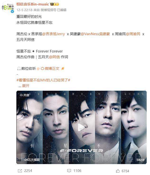而随着新歌《恒星不忘ForeverForever》的发布,由周杰伦作曲、阿信作词,加上F3和周杰伦、阿信五人合唱的“王炸”组合,这首歌在音乐平台上线仅10分钟收藏就突破万次。
