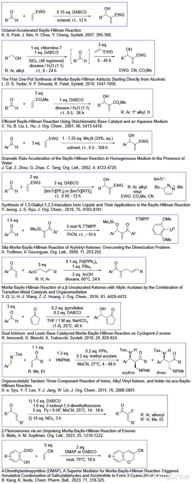 除 DABCO 可作为催化剂外,其他的叔胺和叔膦乃至硒酚锂等弱亲核试剂也可以用于催化这个反应。