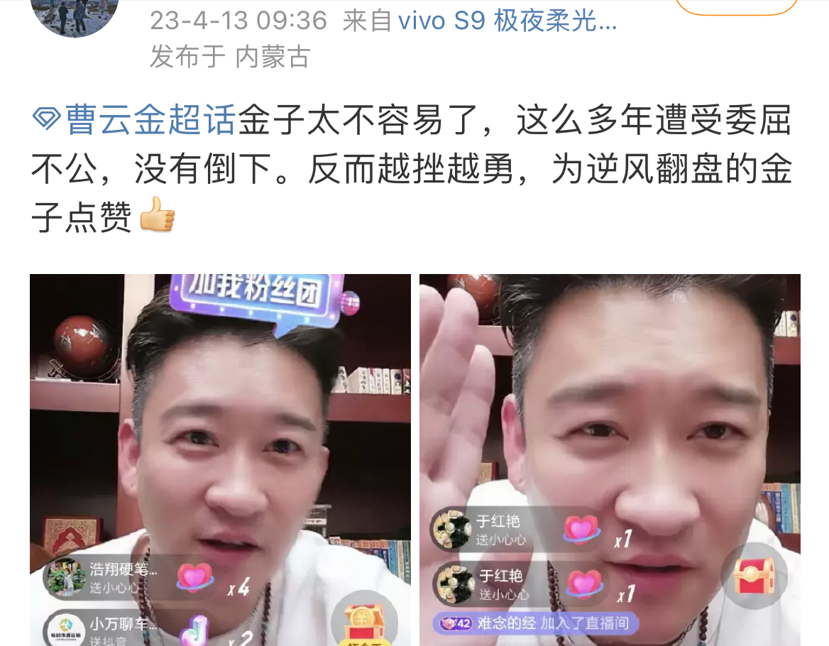 本以为自己和德云社之间的闹剧会人气下降,但是一番尝试之后,曹云金发现,直播的效果似乎很不错。